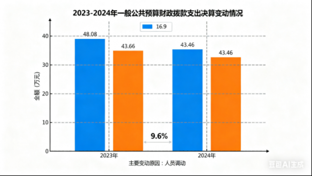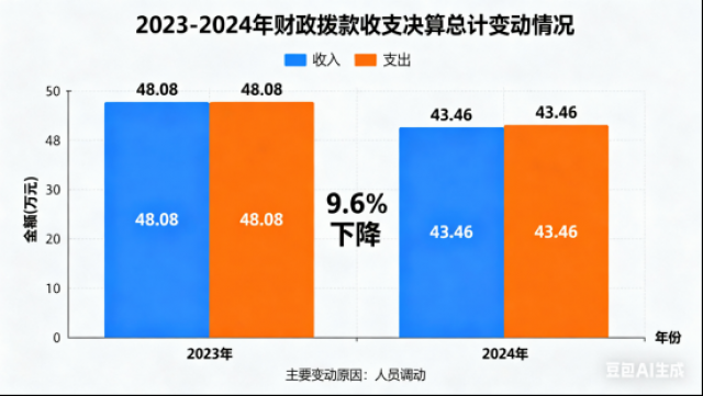 2024年度财政拨款收入、支出总计均为43.46万元。与2023年度相比,财政拨款收入总计、支出总计各减少4.62万元,下降9.6%。主要变动原因是人员调动。