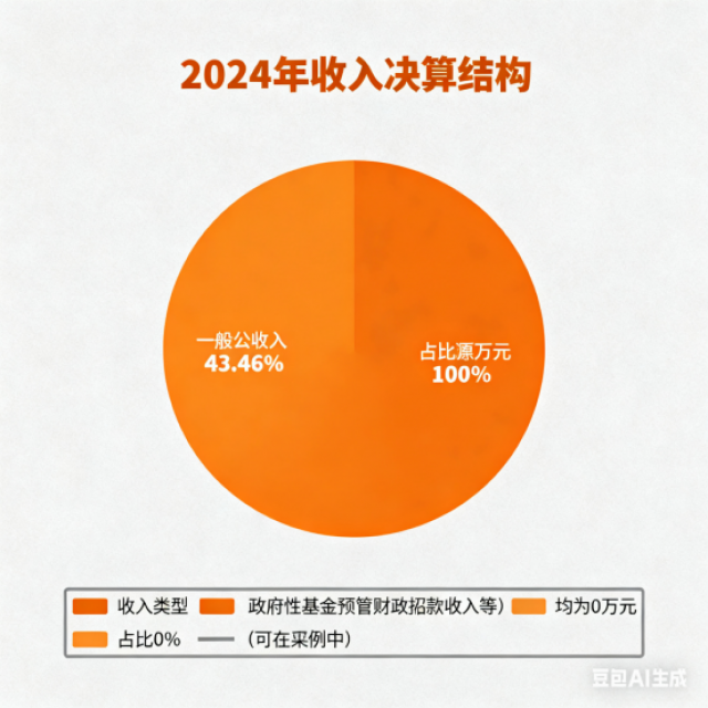 2024年度本年收入合计43.46万元,其中:一般公共预算财政拨款收入43.46万元,占100%;政府性基金预算财政拨款收入0万元,占0%%;国有资本经营预算财政拨款收入0万元,占0%;上级补助收入0万元,占0%;事业收入0万元,占0%;经营收入0万元,占0%;附属单位上缴收入0万元,占0%;其他收入0万元,占0%。
