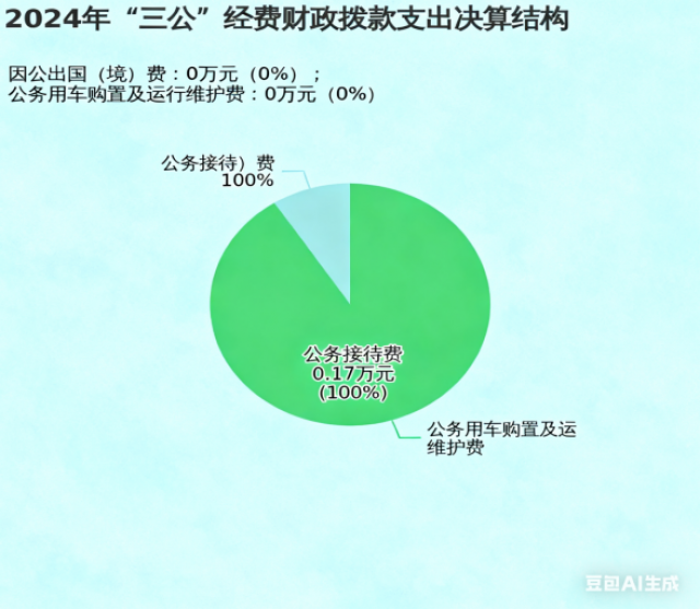 2024年度“三公”经费财政拨款支出决算中,因公出国(境)费支出决算0万元,占0%;公务用车购置及运行维护费支出决算0万元,占0%;公务接待费支出决算0.17万元,占100%。具体情况如下: