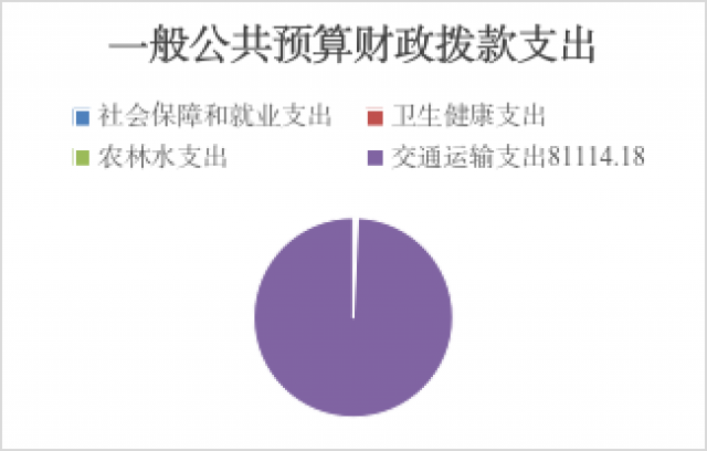 2024年度一般公共预算财政拨款支出81805.06万元,主要用于以下方面社会保障和就业支出300.04万元,占0.37%;卫生健康支出62.91万元,占0.08%;农林水支出235.40万元,占0.29%;交通运输支出81114.18万元,占99.16%;住房保障支出92.53万元,占0.11%。(注:仅罗列本部门涉及的全部功能分类科目,至类级)