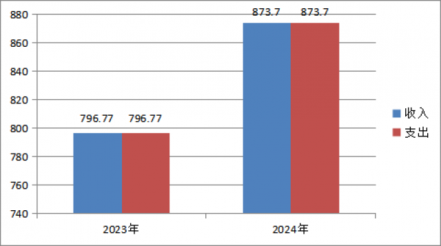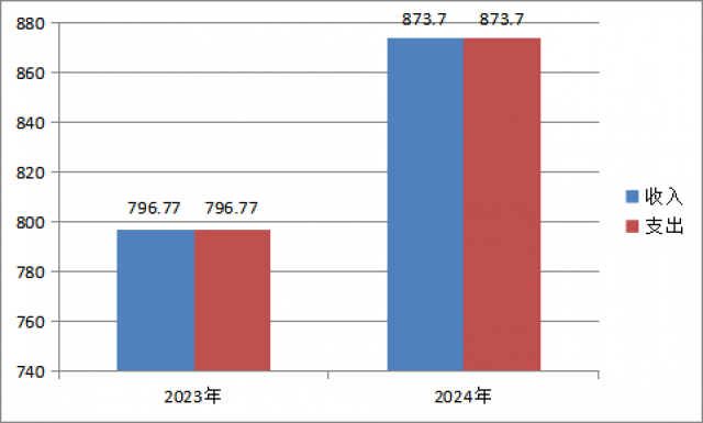 2024年度收入、支出总计均为873.70万元。与2023年度相比,收入、支出总计各增加76.93万元,增长9.66%。主要变动原因是本年人员工资正常晋档晋级,以及抚恤金、职业年金缴费、退休人员相关补贴等支出增加。