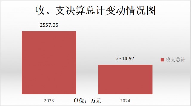2024年度收入、支出总计均为2,314.97万元。与2023年度相比,收入、支出总计各减少242.07万元,下降9.5%。
