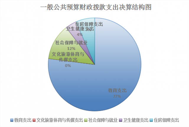 2024年度一般公共预算财政拨款支出1257.74万元,主要用于以下方面:教育支出968.62万元,占77.00%;文化旅游体育与传媒支出0万元,占0%;社会保障和就业支出157.41万元,占12.52%;卫生健康支出49.26万元,占3.92%;住房保障支出82.45万元,占6.56%。