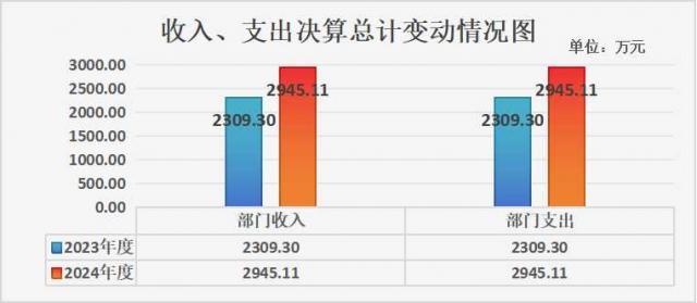 2024年度财政拨款收、支总计均为2945.11万元。与2023年度相比,财政拨款收、支总计各增加635.81万元,增长27.53%。主要变动原因是教师调入人数增多,学生人数增加,公用经费增加,增加了项目等原因。