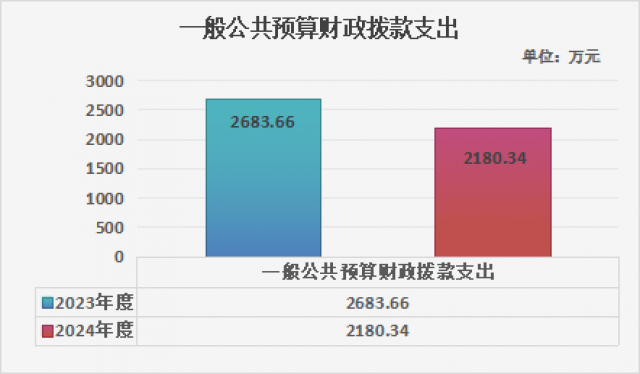 2024年度一般公共预算财政拨款支出2180.34万元,占本年支出合计的100%。与2023年度相比,一般公共预算财政拨款支出减少503.32万元,减少23.08%。主要变动原因是教师人数减少和学校项目减少,相应的收入支出减少。