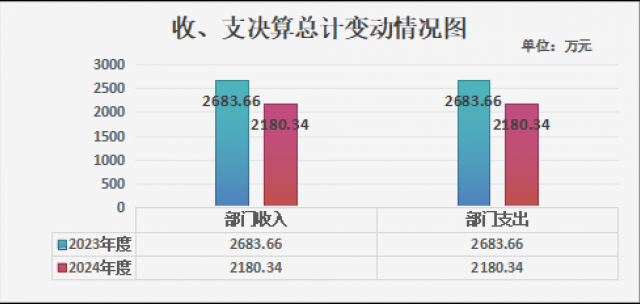 2024年度收、支总计均为2180.34万元。与2023年度相比,收、支总计各减少503.32万元,减少23.08%。主要变动原因是教师人数减少和学校项目减少,相应的收入支出减少。