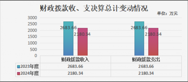 2024年度财政拨款收支总计均为2180.34万元。与2023年度相比,财政拨款收支总计各减少503.32万元,减少23.08%。主要变动原因是教师人数减少和学校项目减少,相应的收入支出减少。