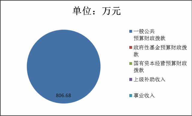 预算财政拨款收入806.68万元,占100%;政府性基金预算财政拨款收入0万元,占0%;国有资本经营预算财政拨款收入0万元,占0%;上级补助收入0万元,占0%;事业收入0万元,占0%;经营收入0万元,占0%;附属单位上缴收入0万元,占0%;其他收入0万元,占0%。