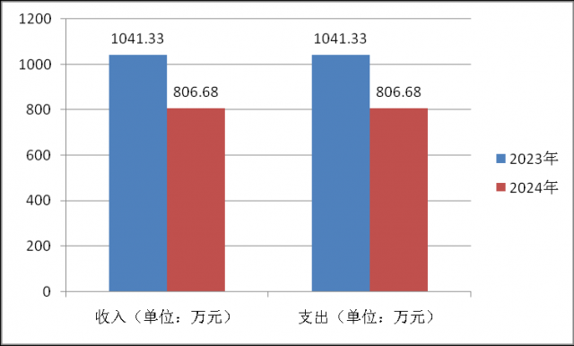 2024年度收、支总计均为806.68万元。与2023年度相比,收、支总计各减少234.65万元,下降22.53%。主要变动原因是人员退休导致人员经费减少,以及部分项目经费预算安排减少。