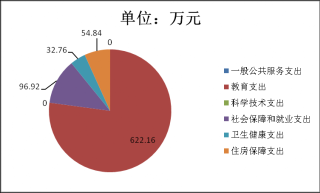 2024年度一般公共预算财政拨款支出806.68万元,主要用于以下方面:一般公共服务支出0万元,占0%;教育支出622.16万元,占77.13%;科学技术支出0万元,占0%;文化旅游体育与传媒支出0万元,占0%;社会保障和就业支出96.91万元,占12.01%;卫生健康支出32.76万元,占4.06%;住房保障支出54.84万元,占6.8%。