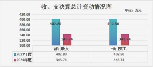 2024年度收、支总计均为343.74万元。与2023年度相比,收、支总计各减少59.06万元,减少12.66%。主要变动原因是无项目新增。