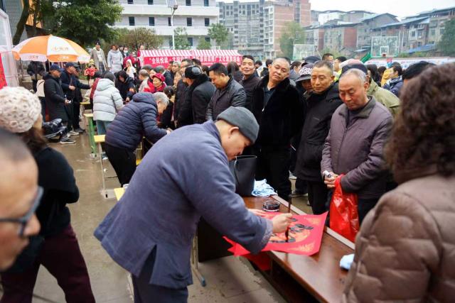 下午4点,“翰墨迎春·‘福’到涌北”春联书画展示区墨香四溢。书法家们现场挥毫泼墨,为村民书写春联和“福”字,送去新春的吉祥祝福。活动共计向村、社区群众赠送春联、“福”字500余幅。
