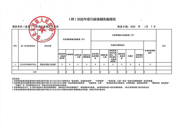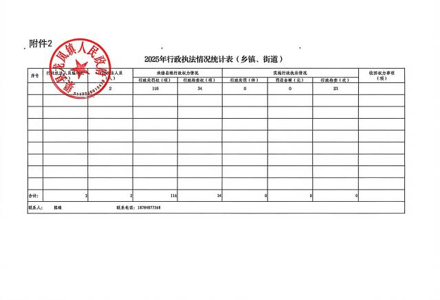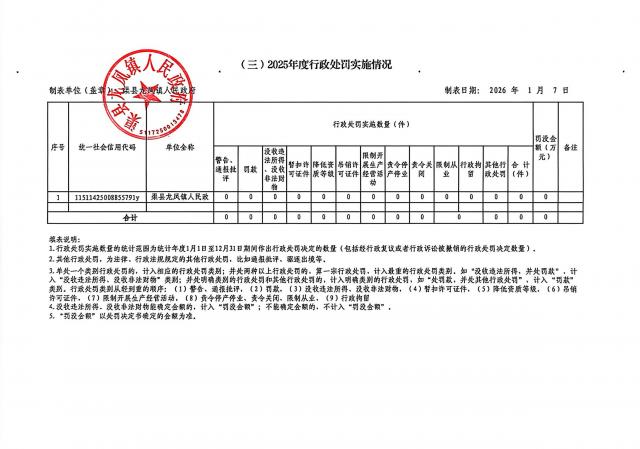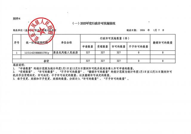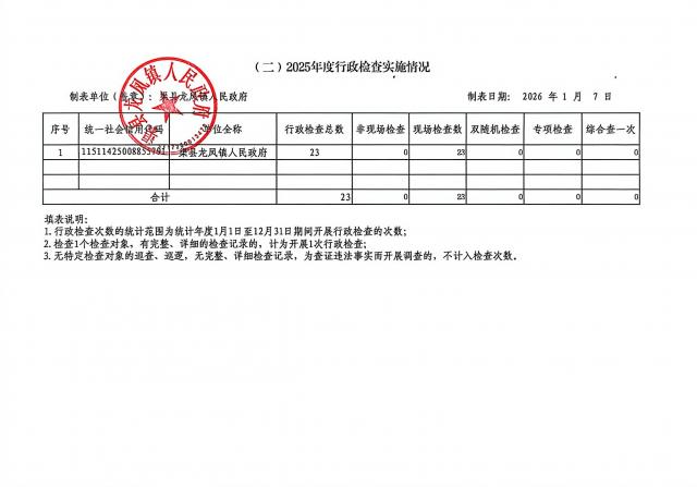 龙凤镇2025年度行政许可、行政检查、行政处罚、行政强制实施情况统计表