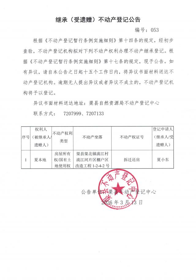 不动产权利继承登记公告--夏小东