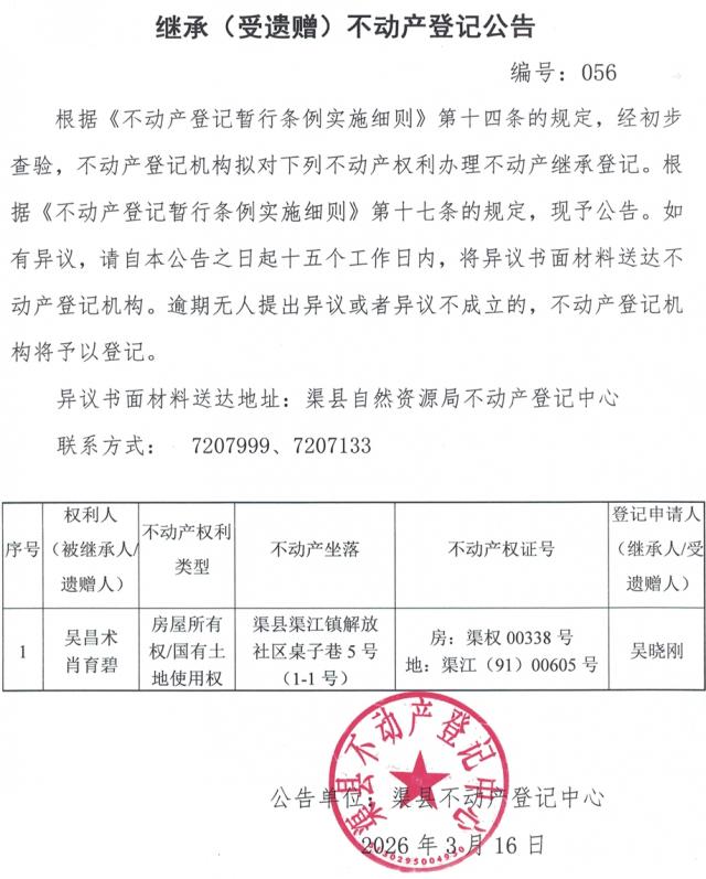 不动产权利继承登记公告--吴晓刚