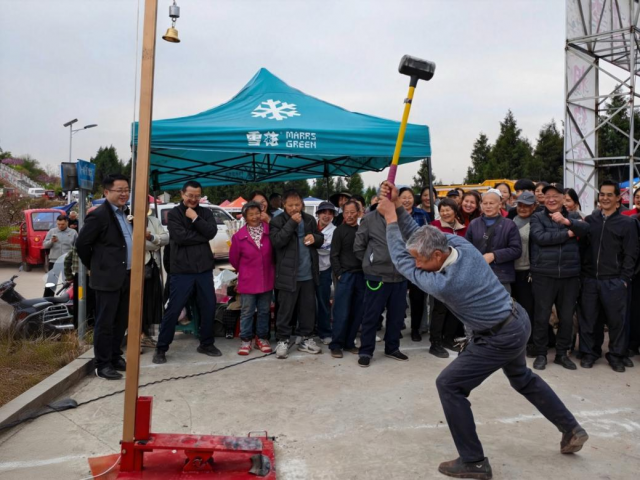 不远处的“铁锤挑战”区域同样热闹非凡,游客们手持铁锤跃跃欲试,瞄准目标奋力敲击,清脆铃声伴着阵阵欢笑,为桃花节注入灵动朝气。这边趣味正浓,那边羊肉把把烧、特色坝坝席等地道美食飘散诱人香气,吸引游客大快朵颐。“桃源寻踪”观光路线串联起荫密茂林与田园民宿,沿途打卡点与休憩驿站让游客在赏花之余尽享悠闲。