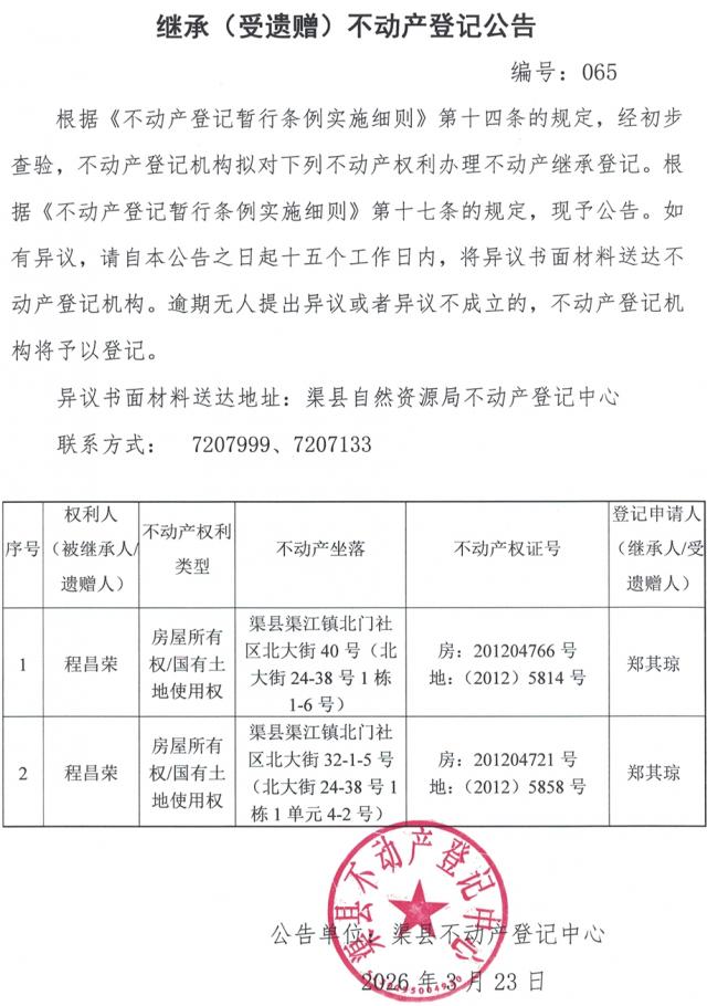 不动产权利继承登记公告--郑其琼