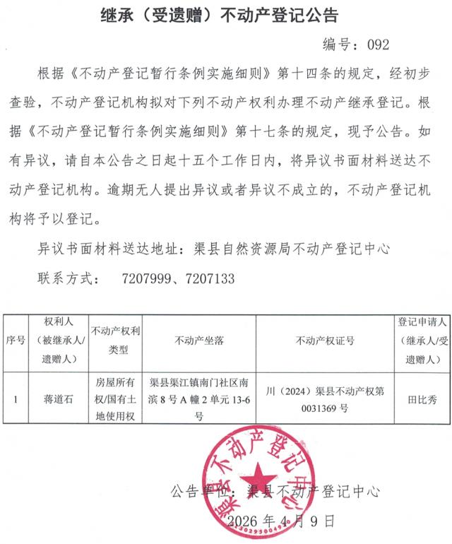 来源:渠县不动产登记中心